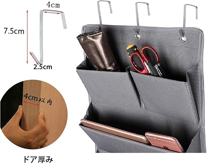 折りたたみ ウォールポケット ドアハンガーポケット 4段 5ポケット 壁掛け ドア掛け 小物入れ 収納ポケット 便利グッズ 水洗い可能 雑誌 書類 新聞紙などの収納に最適