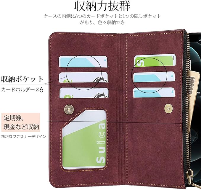 【財布機能】①6枚のカード、1枚の写真、1枚の紙幣のビット、カードや現金を安全に保管します。カード、建物、地下鉄またはその他の交通機関へのアクセスのために定期的にカードをスワイプする人に最適です、加えて精巧なファスナーデザイン :もっと安心してカードや現金を携帯のケースに入れて、安全で便利です。②精巧なファスナーデザイン :もっと安心してカードや現金を携帯のケースに入れて、安全で便利です。