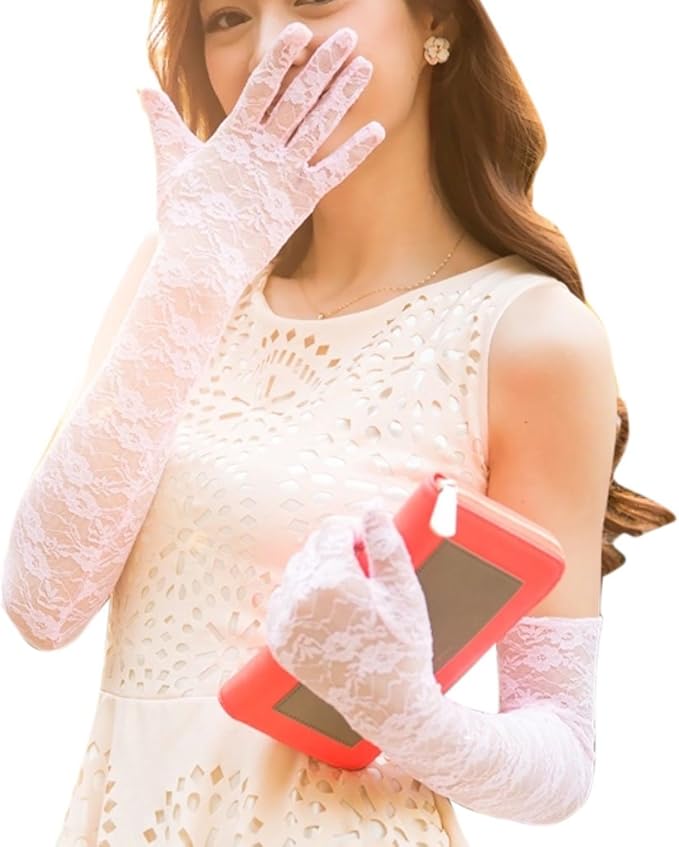 [LYING] レディース 手袋 アームカバー 夏 UVカット 紫外線対策 日焼け防止 レース ロング 5本指 運転 ドライブ グローブ 腕カバー 薄い 花柄 ファッション小物 美しい ドレス用グローブ 結婚式 花嫁 お洒落 エレガント 55cm 全5色