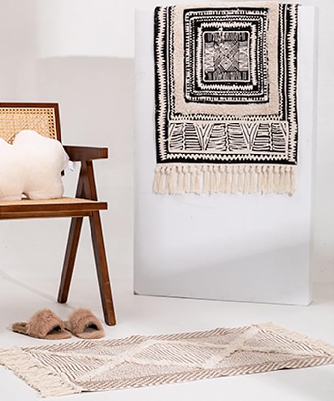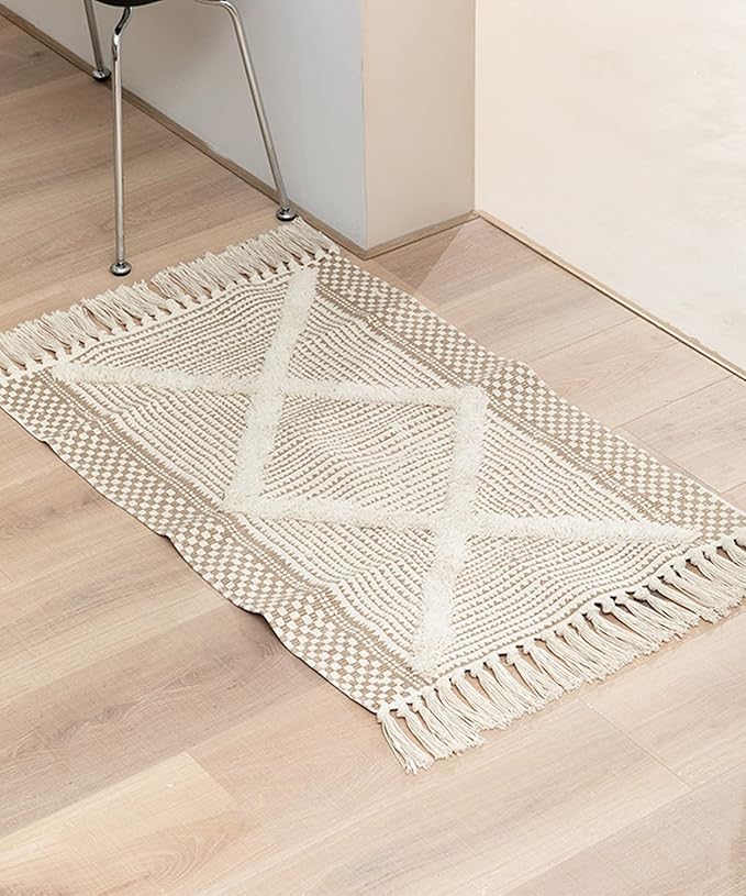 ラグ 洗える カーペット フリンジ 室内マット 玄関 アンティーク SNS映え 韓国雑貨 ナチュラルヌーディーラグ(ブラウン系その他、SMALL)
