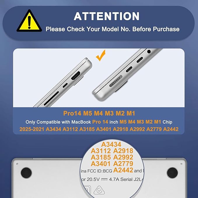 【対応機種】対応機種 MacBook Pro 14 インチ M5 M4 M3 M2 M1 Pro/Max、Liquid Retina XDR Display & Touch ID付き 2026 2025 2024 2023 2022 2021リリース(モデル: A3434 A3112 A3185 A3401 A2918 A2992 A2779 A2442) のみに対応します。このケースは他の言及されていないモデルとは互換性がありません