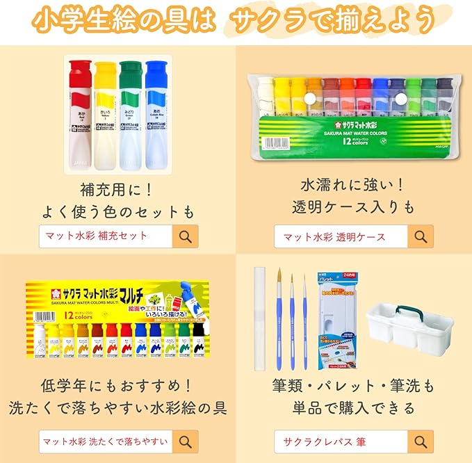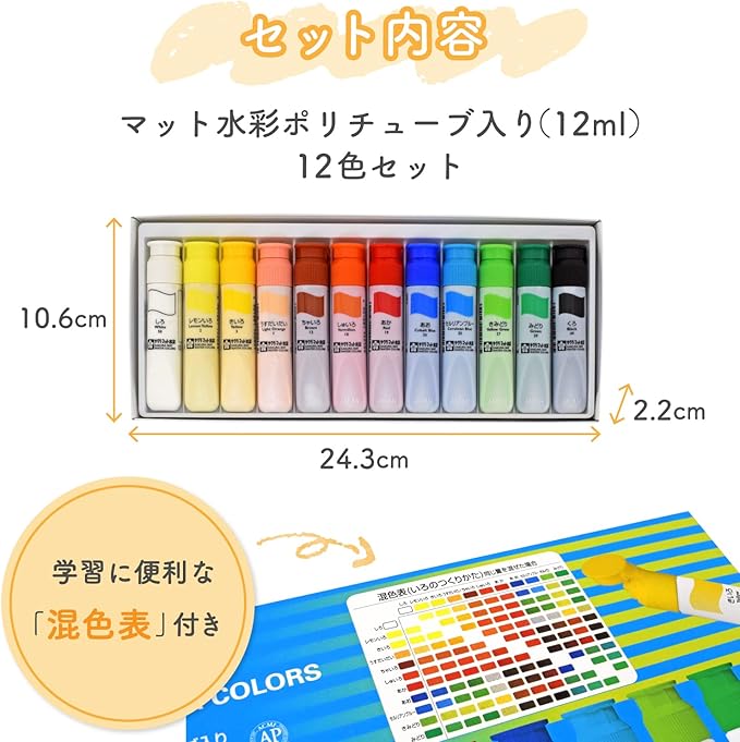 ●使いやすいポリチューブに入ったマット水彩絵の具は水の量を調節することで、不透明調、透明調の絵が楽しめます。