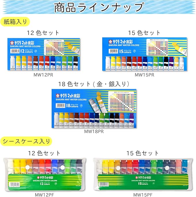 サクラクレパス 絵の具 マット水彩 ポリチューブ入り 12色セット MW12PR