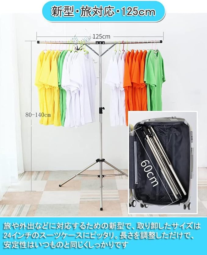 物干しラック 布団ハンガー DEWEL 洗濯ハンガー タオルハンガー ふとん干し 洗濯物干し 折り畳み 伸縮式 省スペース(125(旅行用))