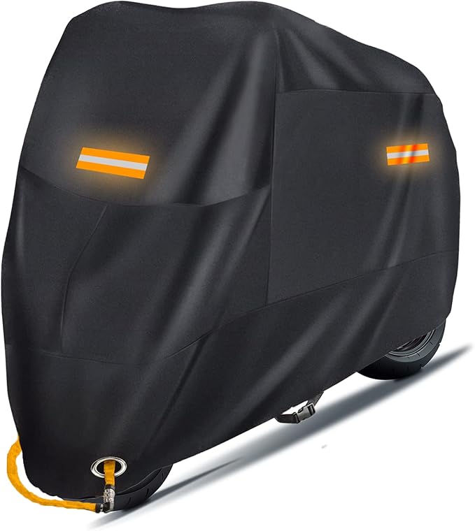 バイクカバー バイク用レインカバー 厚手 耐熱 防水 反射ストライプ3枚 調節可能ワンタッチバックル 紫外線防止 盗難防止 防埃 防雨 防雪 収納バッグ付き (2XL)