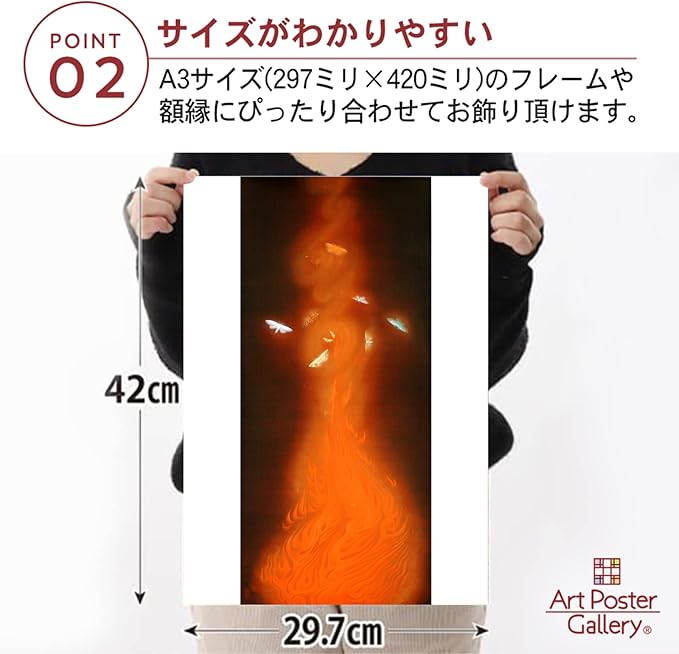 【サイズ】A3(297ミリ 420ミリ) 市販のA3フレーム(額縁)にぴったり合います。ポスターが届いたら好きなフレームと合わせたり、ピンなどで壁に飾って下さい。気軽に名画 を楽しめます。