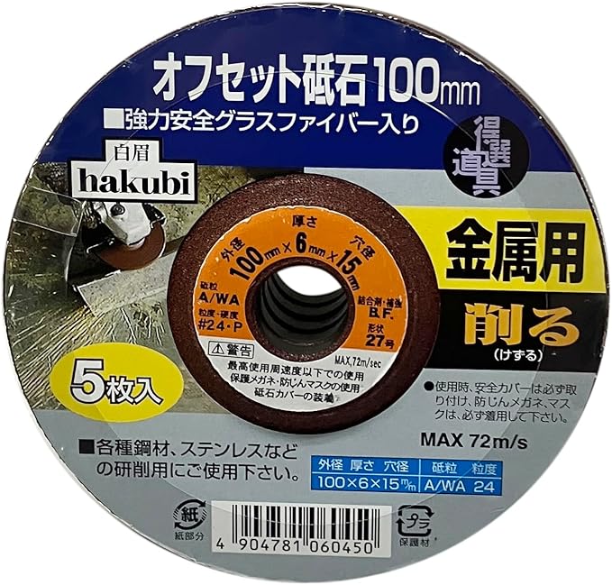 アークランズ(Arclands) 確認中 HAKUBI 金属用オフセット砥石 100mm 5枚入
