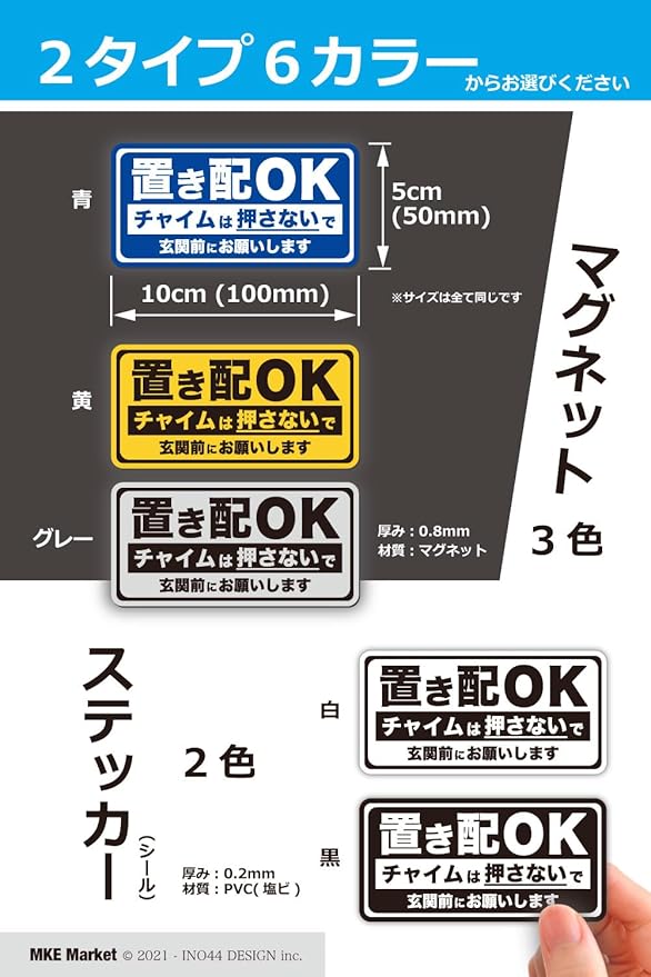 MKE 強粘着シール!! 置き配OK 置き配指定 耐水ステッカー 日本製 (白)