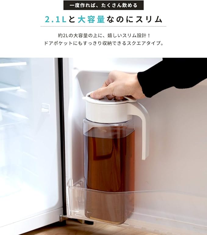 完全密封で横置き可能な冷水筒「ドリンク・ビオ」2.1L