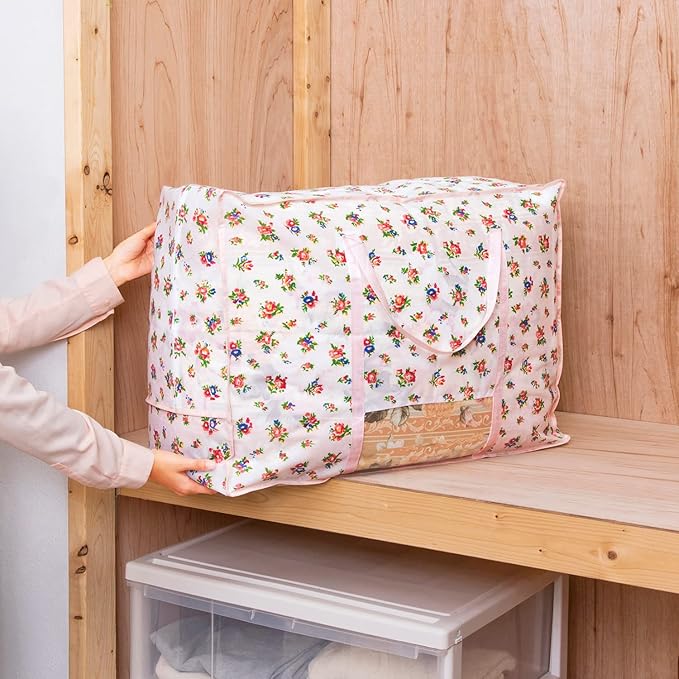 アストロ 収納ケース 羽毛布団用 シングルサイズ・ダブルサイズ兼用 プチローズ柄 不織布 収納袋 縦置き 持ち手付き 183-25