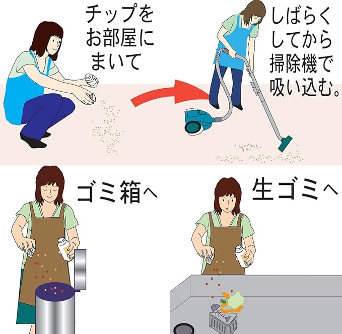 注意:食べ物ではありませんのでお子様の手の届かないところに保管してください。直射日光や高温多湿は避けて保管してください。使用後はチャックをしっかり閉めて保管してください。チャックを開ける際に中のチップが飛び出さないようにご注意ください。木材使用のため、真空状態になる場合がありますが、品質には問題ありません。