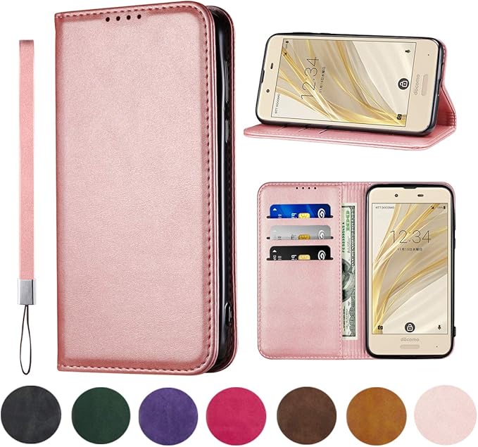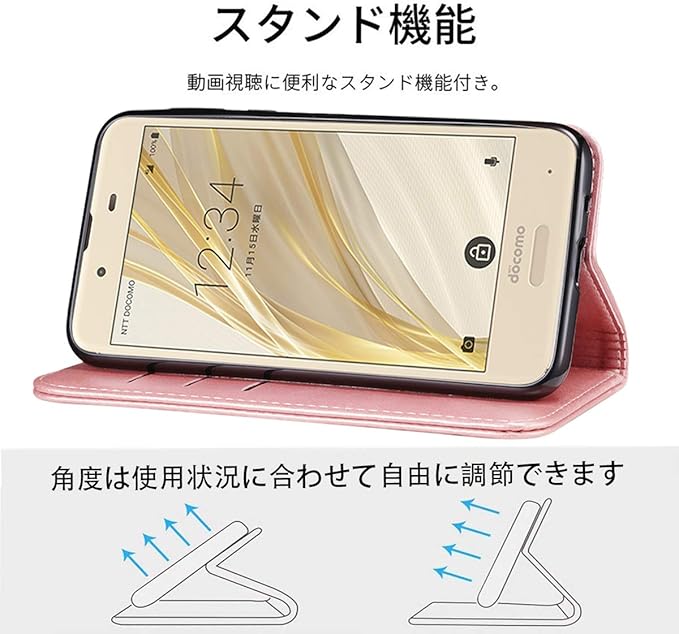 AQUOS Sense SH-01K ケース 手帳型 高質PUレザー Sense Lite カバー SH-01K/SHV40/SH-M05 通用ケース 耐衝撃 内蔵マグネット開閉式 ベルトなし スマホケース おしゃれ カードポケット スタンド機能 便利 スプラット同梱 携帯ケース(ピンクゴールド)