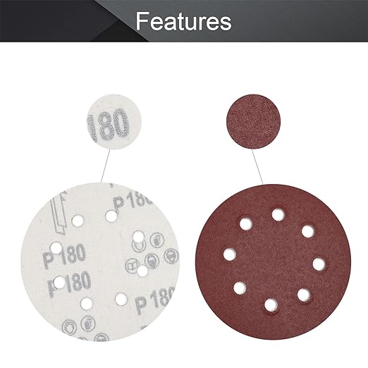 Utoolmart サンドペーパー ディスクペーパー ダブルアクション マジック ペーパー 研磨 やすり サンダー サンディングディスク 8穴あき #180 電動サンダー用 サンディングパット 木工用 ランダムアクションサンダー用 サンディング 研磨 サンダー用紙やすり丸型 5寸 125mm 金属表面の錆取り 研磨工木工生地研磨用 50pcs