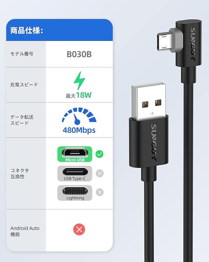 ✅【L型デザイン】Micro Bコネクタは革新なL型デザインを採用して、水平でビデオを見るやゲームをしたとき、充電もじゃましなく、車内設備を接続する際にもより便利使用できます