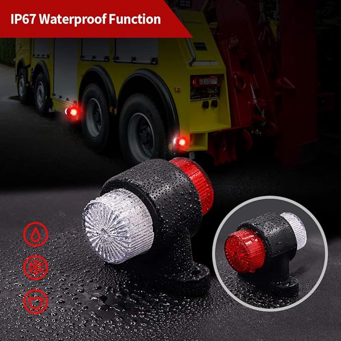 Aoling サイドマーカー LED トラック 12V24V 軽トラックマーカーランプ サイドランプ 赤&白配光 防水防塵 2個セット