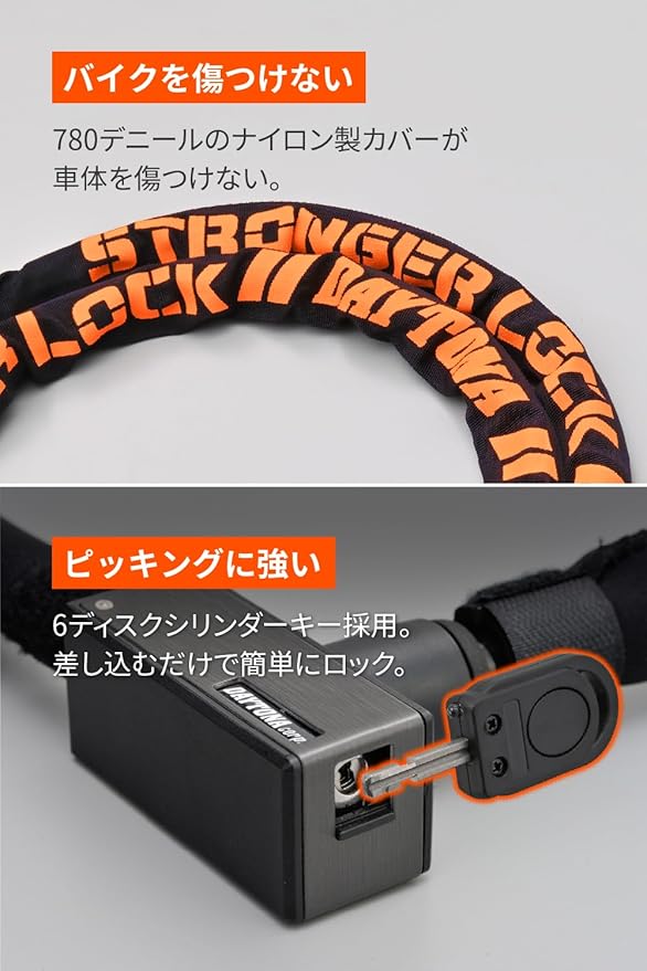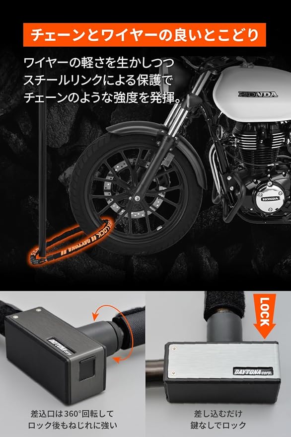 デイトナ(Daytona) バイク用 ワイヤーロック φ20mm ストロンガースチールリンクロック 鍵タイプ 1200mm シルバー 97660