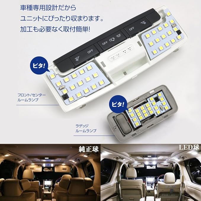 専用設計のフィット感:本製品は純正のセレナC27から採寸し、専用に設計されたLEDルームランプなので、配線や加工などは要りません。