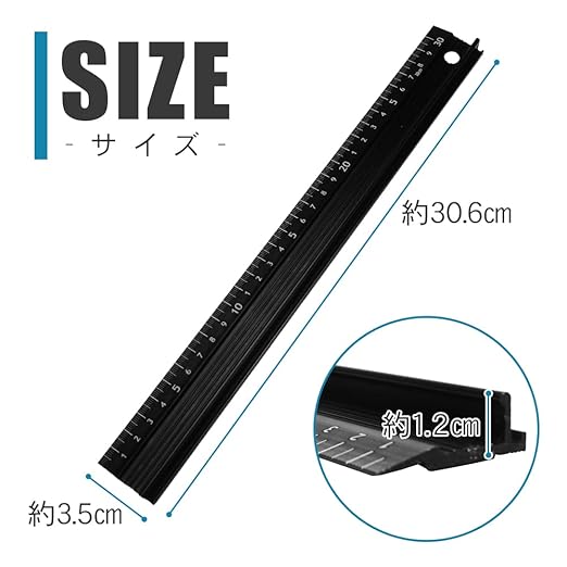 カッターガイド 定規 曲尺 30cm仕様 裁断用 アルミニウム合金 滑り止め完備 レーザー印字 多用途