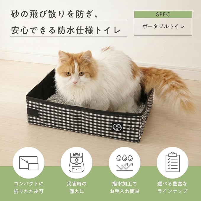 【ポータブルケージとの併用がおすすめ】猫壱のポータブルシリーズ「ポータブルケージ」(別売り)と合わせてのご使用がおすすめです。ポータブルケージの中にポータブルトイレはすっぽりおさまります。災害時の避難場所や、ドライブの車中、旅先など、猫の安心できるスペースにトイレも置いてあげましょう。
