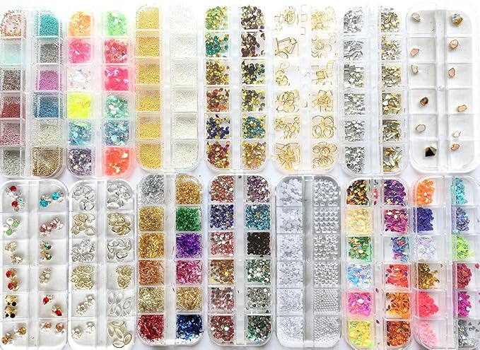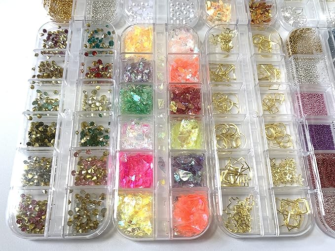 ネイルパーツ 14種類 大容量タイプ ラインストーン ホログラム ブリオン パール 金属パーツ スパンコール チャトン ラメ ネイルアート デコ セルフネイル レジン ネイル