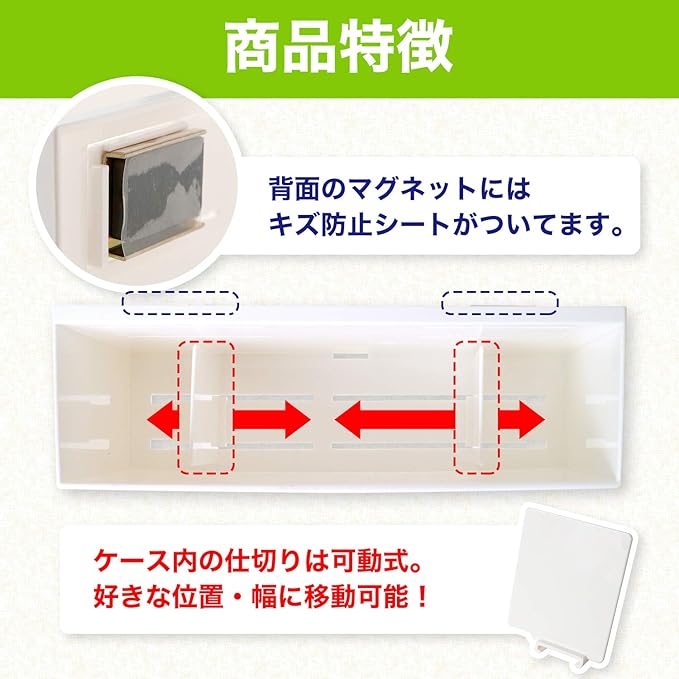 材質 ポケット・アーム・ストッパー=ABS樹脂、仕切り=ポリプロピレン