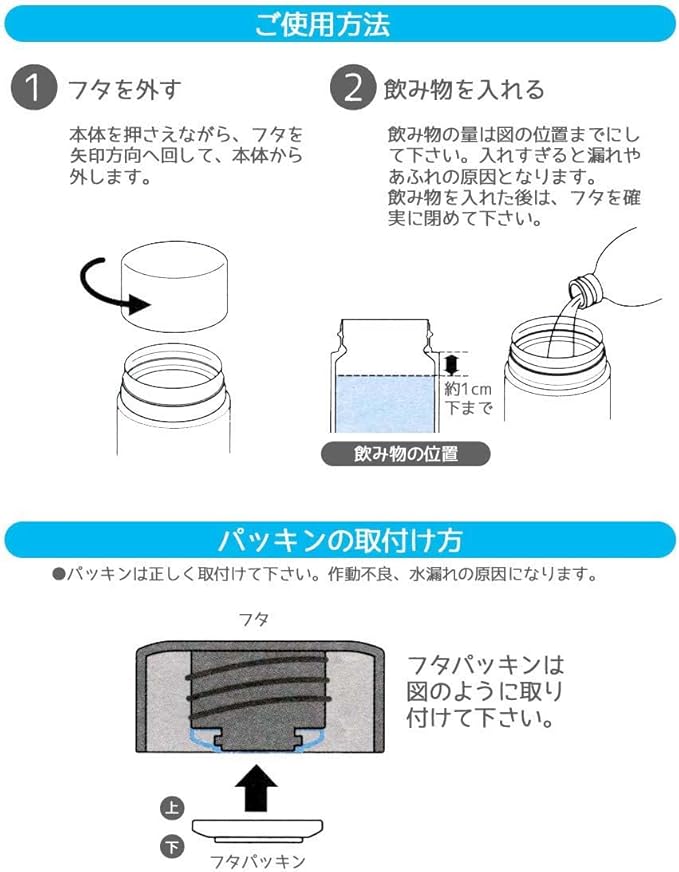 素材・材質:内びん=ステンレス鋼 胴部=ステンレス鋼(アクリル樹脂塗装)<br>フタ=ポリプロピレン 口がね=ステンレス鋼 パッキン=シリコーンゴム