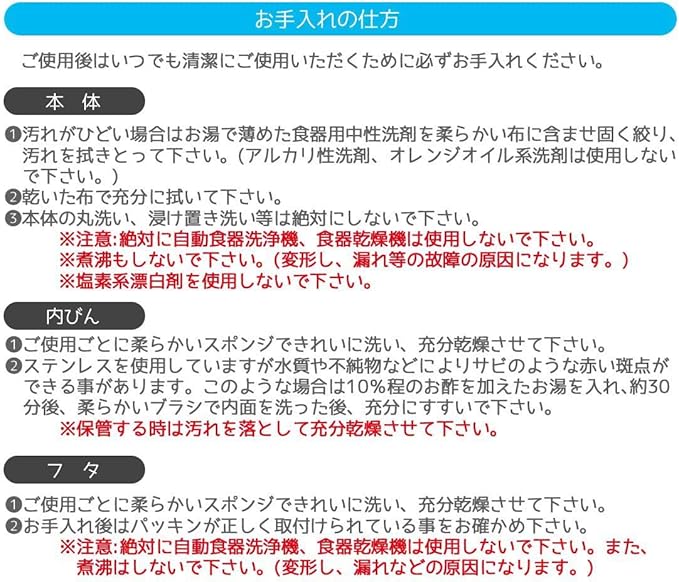 商品のお手入れ方法 手洗いのみ