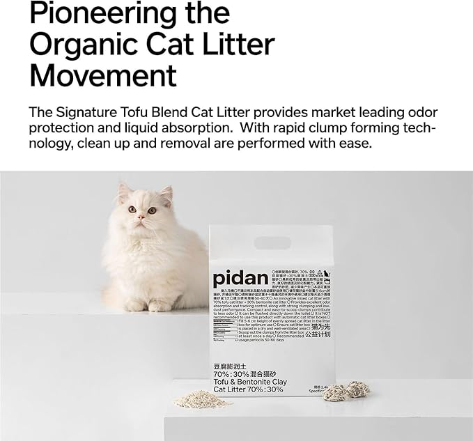 pidan 猫砂 おから 固まる ベントナイトとおから 混ぜる 脱臭 抗菌 真空パック 飛び散らない 天然素材 臭みから解放 粉々になりにくい(2.4kg 1袋)