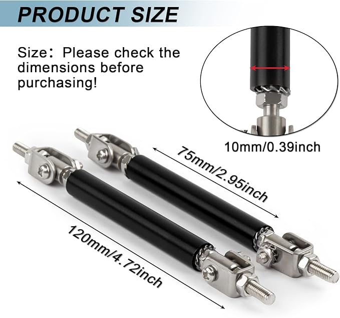 PSLER 3" リップ スポイラ コネクション ロッド 75mm リップスポイラー カナード ディフューザー固定 補強 改造 吊り金具 汎用 (黒色)