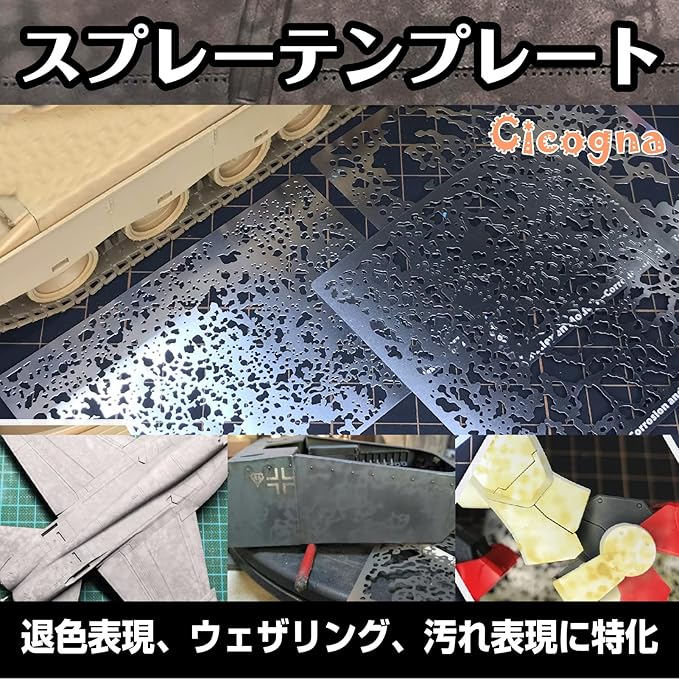 [Cicogna] 塗装 スプレー テンプレート 退色表現 ウェザリング 汚れ 表現 専用 ステンシルシート 戦車 プラモデル 模型 AFV エアブラシ テクスチャー (タイプC)