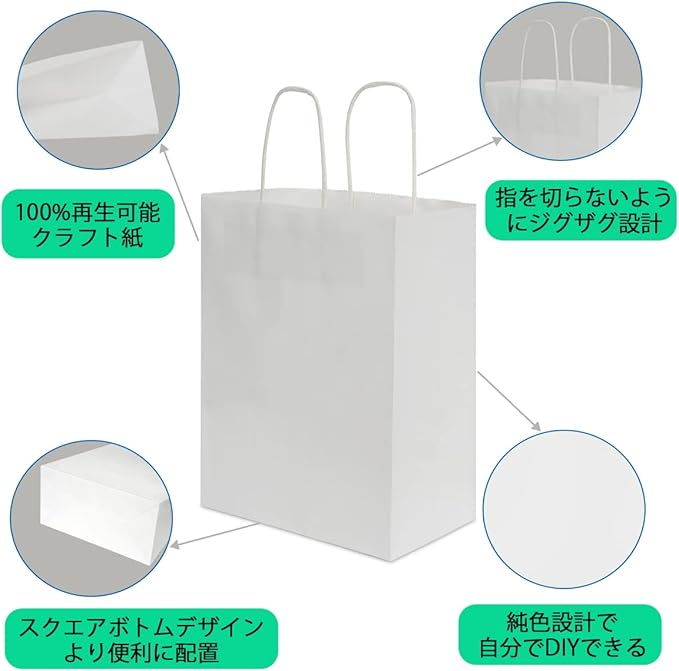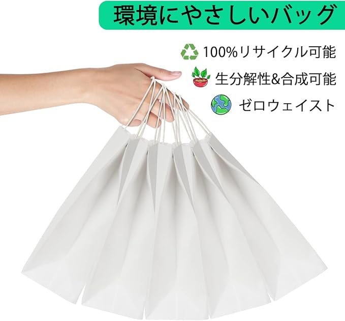 【高品質素材】: 高品質エコクラフト紙でよく加工しており、耐久性がいいです。 頑丈な織りハンドルは、通常のハンドルよりも強い高級感を与え、高負荷時でもより快適なフィーリングを提供します、繰り返しご利用頂けます。