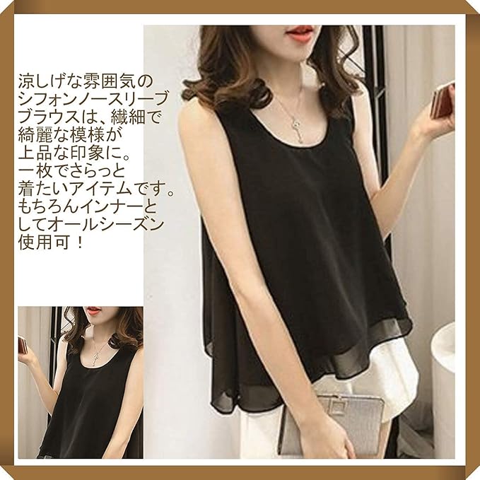 【軽やかなシフォン素材】通気性の良いシフォン素材を使用しており、春夏にぴったりの軽やかさ。肌触りもなめらかで、暑い日でも快適に着用できます。重ね着風の仕立てで、透け感がありながらも上品な印象を与える1枚です。