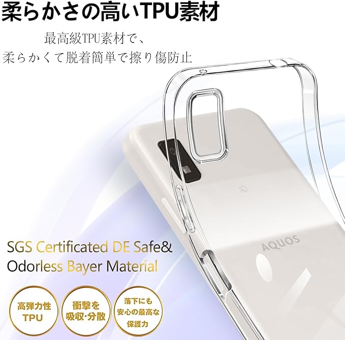 aquos wish3 ケース 透明 クリア A302SH SH-53D ケース sh53d スマホケース 耐衝撃 アクオスwish3 カバー 携帯ケース スマホ 可愛い aquosウィッシュ3ケース tpu ラップホール付き(透明)