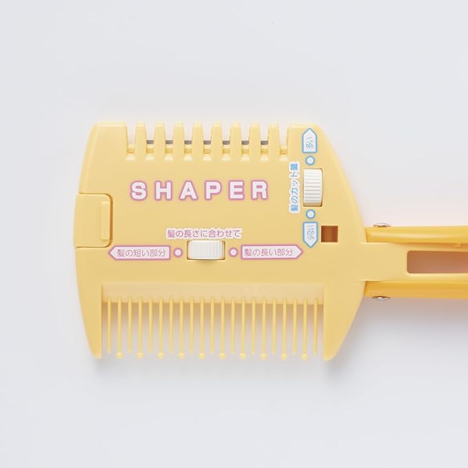 髪の切れる量を調節できるコームシェーパーです。 刃の出る巾と長さ、ヘッドの角度を調整できます。 使用方法 1 毛先が細くなる立てすぎは引っ掛かった感じ髪をブロッキングし、前髪を人差指と中指で少しつまんで長さを決めます。 2 シェーパーは髪に対して3度ぐらいの角度をつけて使ってください。 3 前髪と横の髪を斜め前方に軽く引っ張りながら切り揃えます。 4 頭頂部の髪は、少しずつつまみながらカットしましょう。