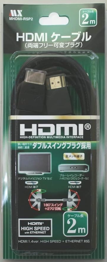 マクサー電機 差込プラグが前後左右に曲がる HDMI ケーブル 2m 4K対応 ver1.4 壁掛けテレビなど隙間の少ない場所への設置に