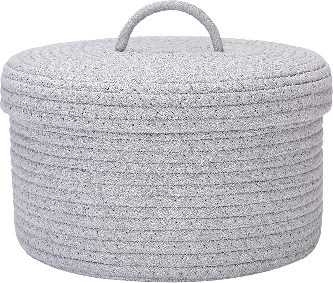 Sea Team コットンロープバスケット 収納バスケット 収納ボックス バスケット 洗濯かご ふたつき 折りたため ナチュラル コットンロープ 小物入れ 靴下パンツ収納 装飾用 おしゃれ かわいい (円形 グレー 30 30 17cm)