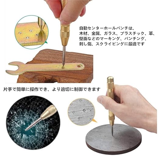 【6+1本セットサイズ】:6mm(1/4′)、8mm(5/16′)、9mm(3/8′)、12mm( 1/2′)、16mm(5/8′)、19mm(3/4′)。自動センターポンチ付き(130mm)