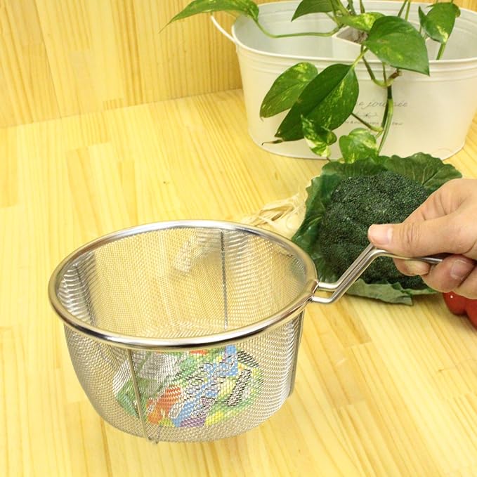 ●業務用ステンレスざる専用メーカーのこだわりでつくった、パスタなどのゆで上げに便利な深型バスケット
