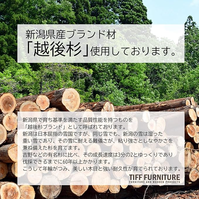 特徴 プッシュピンで簡単取り付け, 壁を傷つけない, 新潟のブランド材「越後杉」を使用しています。, 英国産のヨーロッパの厳しい試験に合格したオイル塗料を使用, 賃貸でも安心