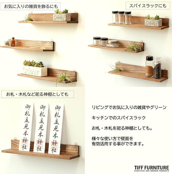 TIFF ウォールシェルフ 3台セット 幅39cm 日本製 神棚 壁掛け 壁 棚 傷つけない ラック 飾り棚 石膏ボード おしゃれ 生活雑貨 木製 越後杉 ウォールラック