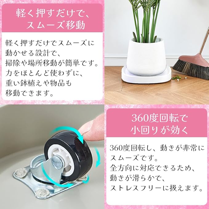 【前後左右にらくらく移動】重たい鉢や花瓶を前後左右にらくらく移動できます。室内の日当たりに合わせて観葉植物を気軽に移動できます。