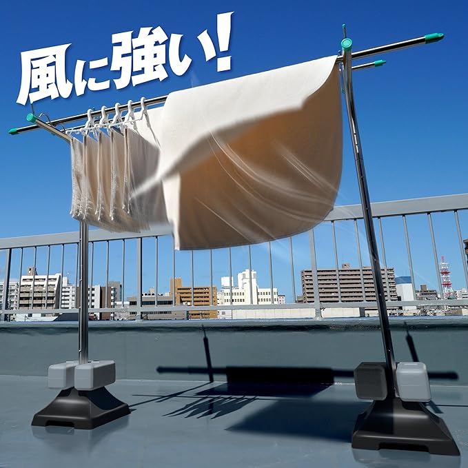 【屋外使用に適した耐久設計】 素材には、耐候性に優れたプラスチック+セメント構造を採用。雨や紫外線に強く、サビや劣化が起こりにくいため、屋外物干し・ベランダ物干し・外干しスタンドとして長期間使用できます。日々の洗濯に限らず、キャンプやBBQ、ガーデニングなどのアウトドア用途にもぴったりです。