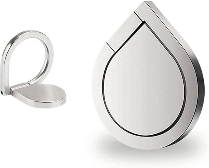 スマホリング 薄型 ホールドリング マグネット 水滴型 スタンド機能 片手操作 360回転 強力吸着 金属製 車載ホルダー対応 タブレット/スマホiPhone/Android各種他対応(シルバー)