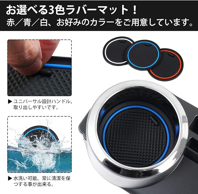2.【商品内容】:増設カップホルダーx1PCS、ドリンクポケットマットx3PCS。(お選べる3色ラバーマット!赤/青/白、お好みのカラーをご用意しています。)【多機能】:カップホルダーだけでなく、携帯入れやカード収納ケースもあります。