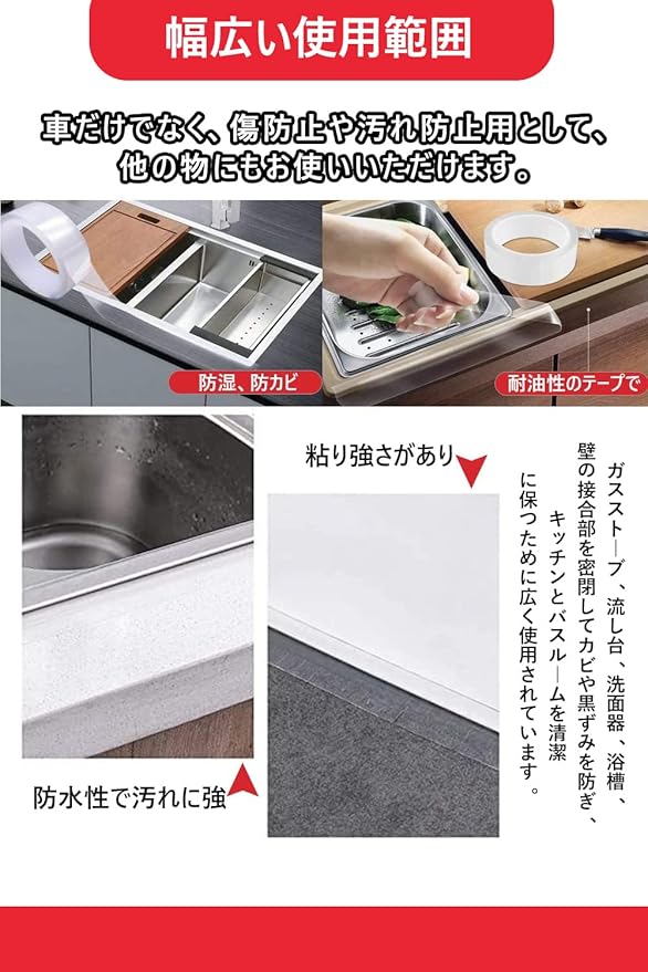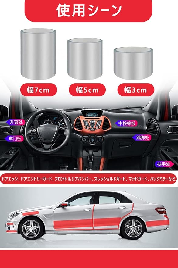 【幅広い使用範囲】車のドアエッジ、エンジンカバー、等にもご使用できます。さらに、車だけでなく、傷防止や汚れ防止用として、他の物にもお使いいただけます。