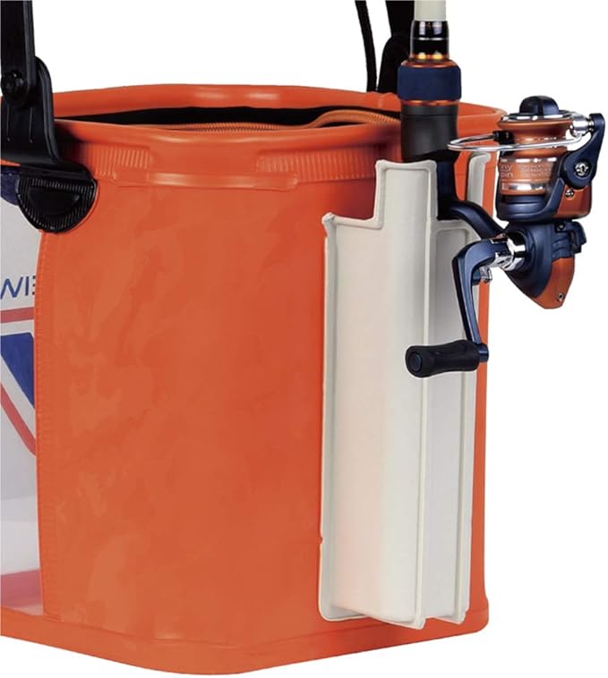 1本用のロッドホルダーが付属したEVA活かしバケツで、前面半分はシースルーでキープした魚の観察が可能です。