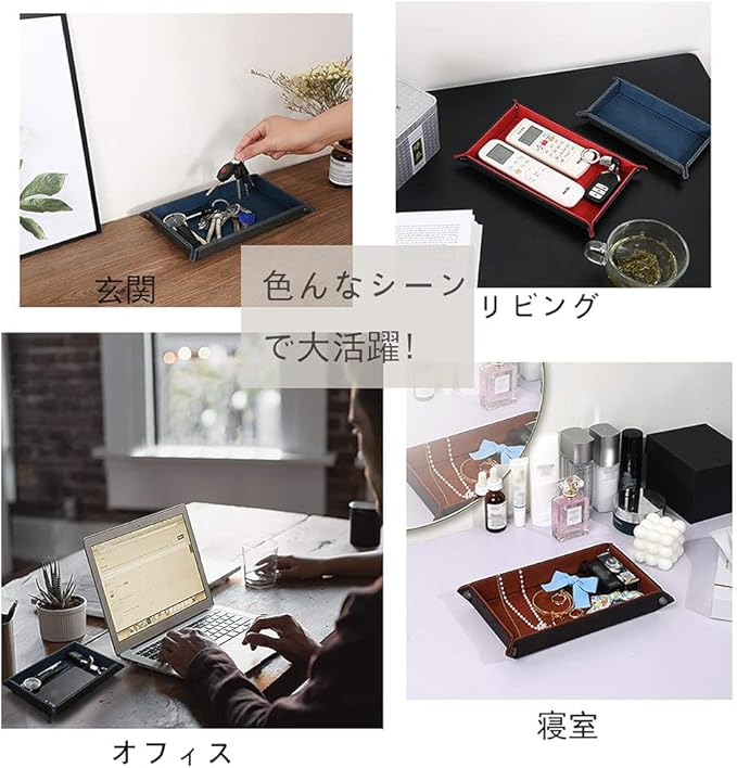 【きれいに整理整頓】鍵、小銭、時計、化粧品、ジュエリー、アクセサリーなどの片付に大活躍です。卓上、鏡台、洗面所や玄関などに置けます。ご自宅用だけでなくオフィスや店舗、ショールームなどのお洒落なディスプレイとしても大活躍です。このトレーにすっきりと片付けられます。様々な場所で使える便利な卓上トレーです。