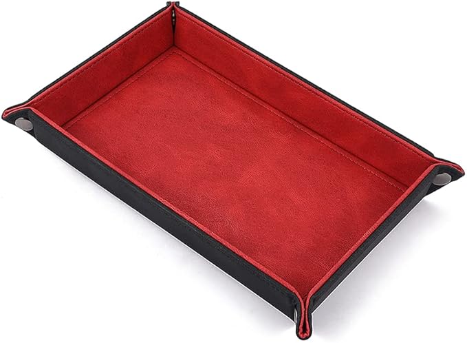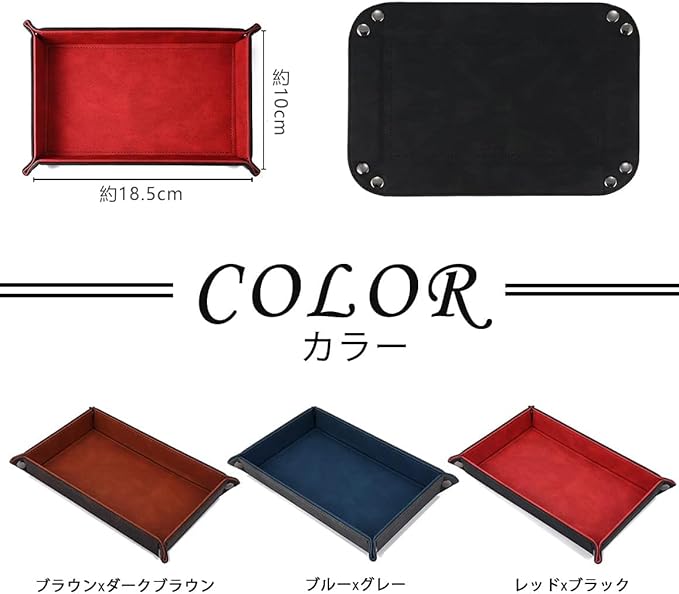 レザートレイ 小物入れ アクセサリートレイ 小物トレー 折り畳み式 こものいれ ボックス 腕時計 鍵 スマホ メガネ アクセサリー リモコン 収納ボックス おしゃれ 携帯便利 Sサイズ (ブラック レッド)