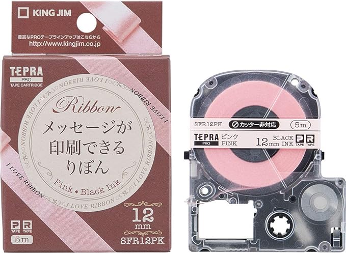 KIN JIM テプラPRO・カラーラベル(りぼん) ピンク/黒文字 12mm SFR12PK