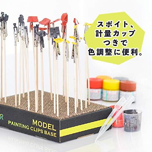 塗装ベースは厚みが42mmで深さに余裕を持たし、塗装棒をしっかり固定します。塗装ブースにそのまま入れやすいサイズです。 独自ハニカム構造で爪楊枝等もしっかり固定。パーツ点数が多いガンプラや、各種プラモデルに最適です。 色の調合に便利な計量カップと、2mlタイプのスポイトをセット。 微妙な色調整に大活躍。計りと併用すれば、いつもの色調子が再現できます。 【セット内容】塗装ベース:200mm 140mm 42mm 塗装クリップ:17cm 30本 計量カップ:27.5cc 2 スポイト2ml 2本